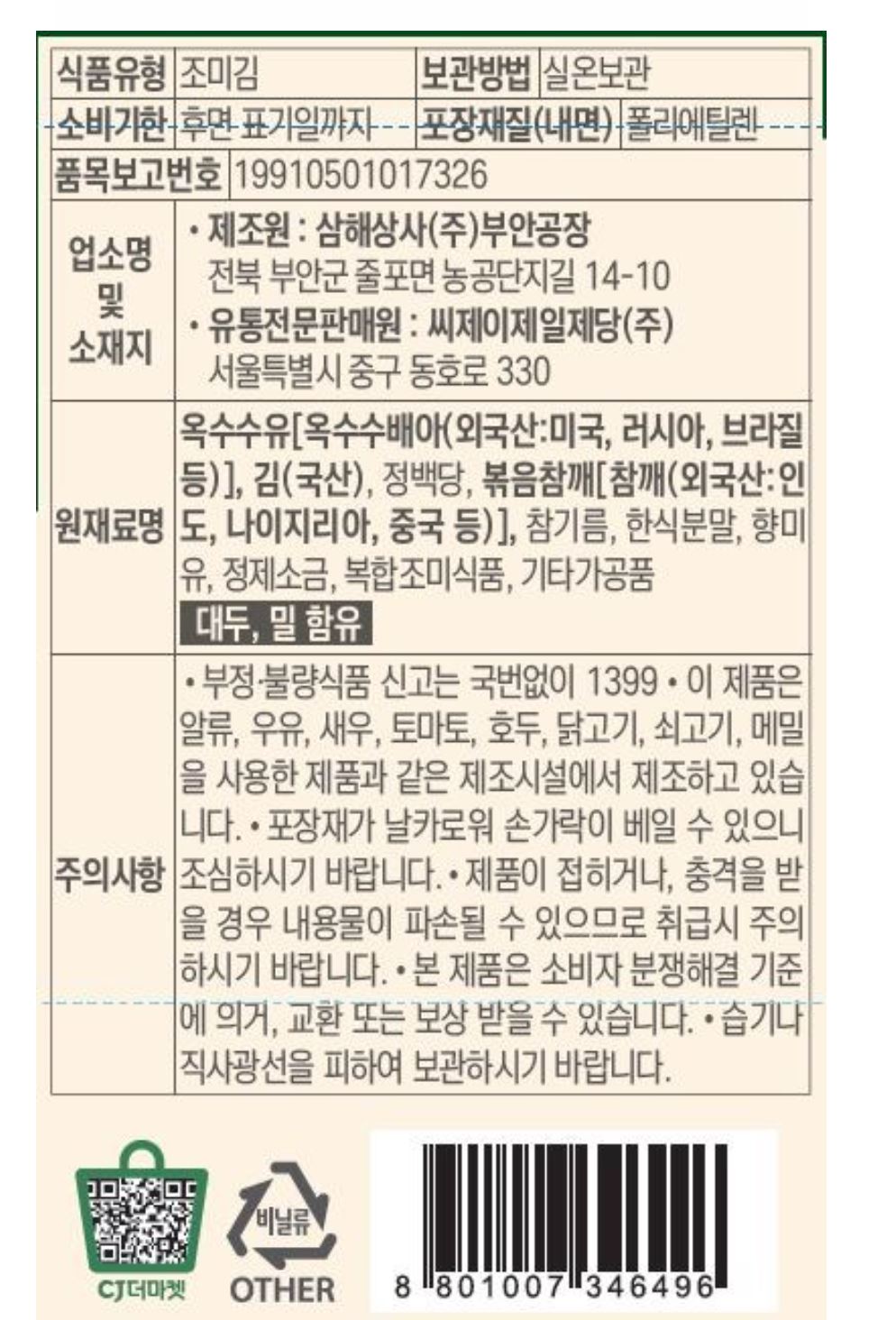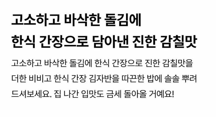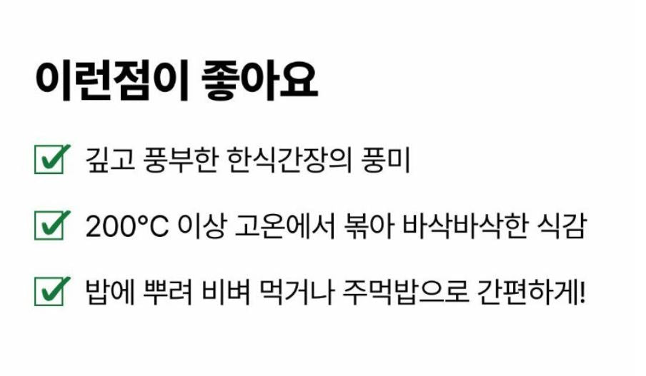 - Korean-style soy sauce seasoning with gentle sesame notes