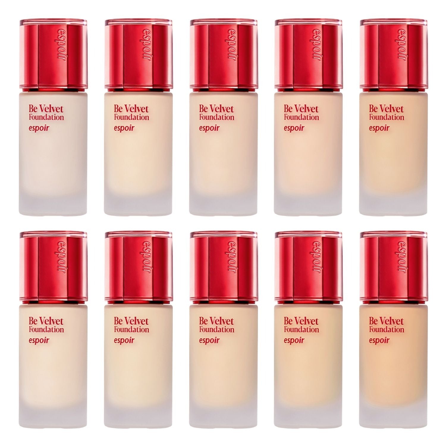 The Be Velvet Foundation by espoir delivers a smooth, modern-matte finish that balances coverage and comfort. With Pore Correct-fit Technology™, the formula softly diffuses light to create an even tone, minimizing uneven texture while maintaining a natural radiance. Designed for effortless daily use, it keeps skin looking refined without feeling heavy or dry.