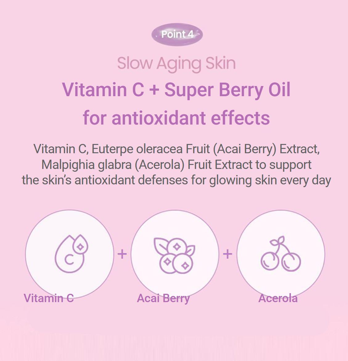 - Formulated with Vitamin C, Acai Berry, and Acerola Fruit Extract for a radiant complexion