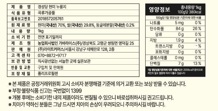 - Product Type: Brown Rice Nurungji (Toasted Rice Crust)