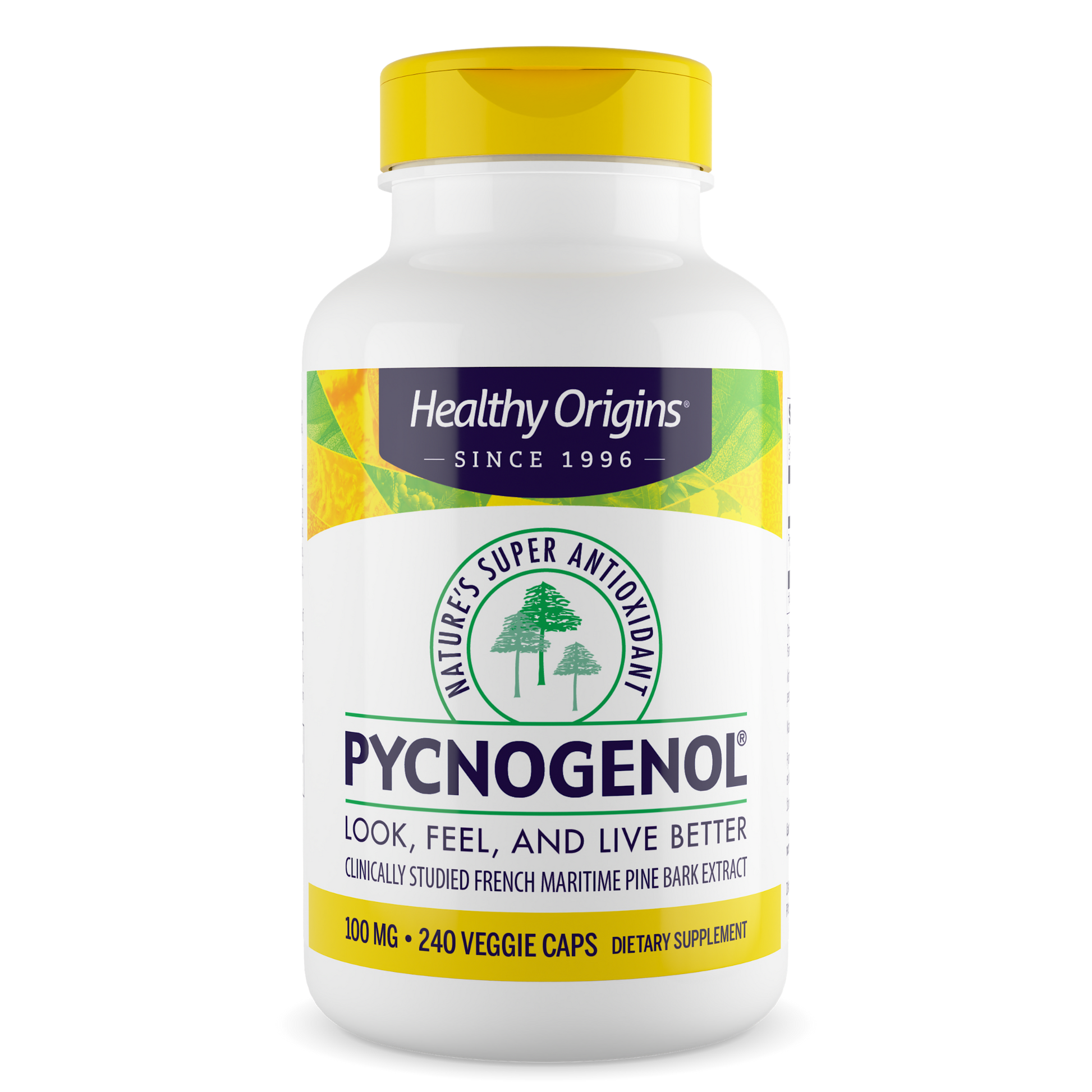 - Contains Pycnogenol® French maritime pine bark extract, standardized to 65–75% procyanidins