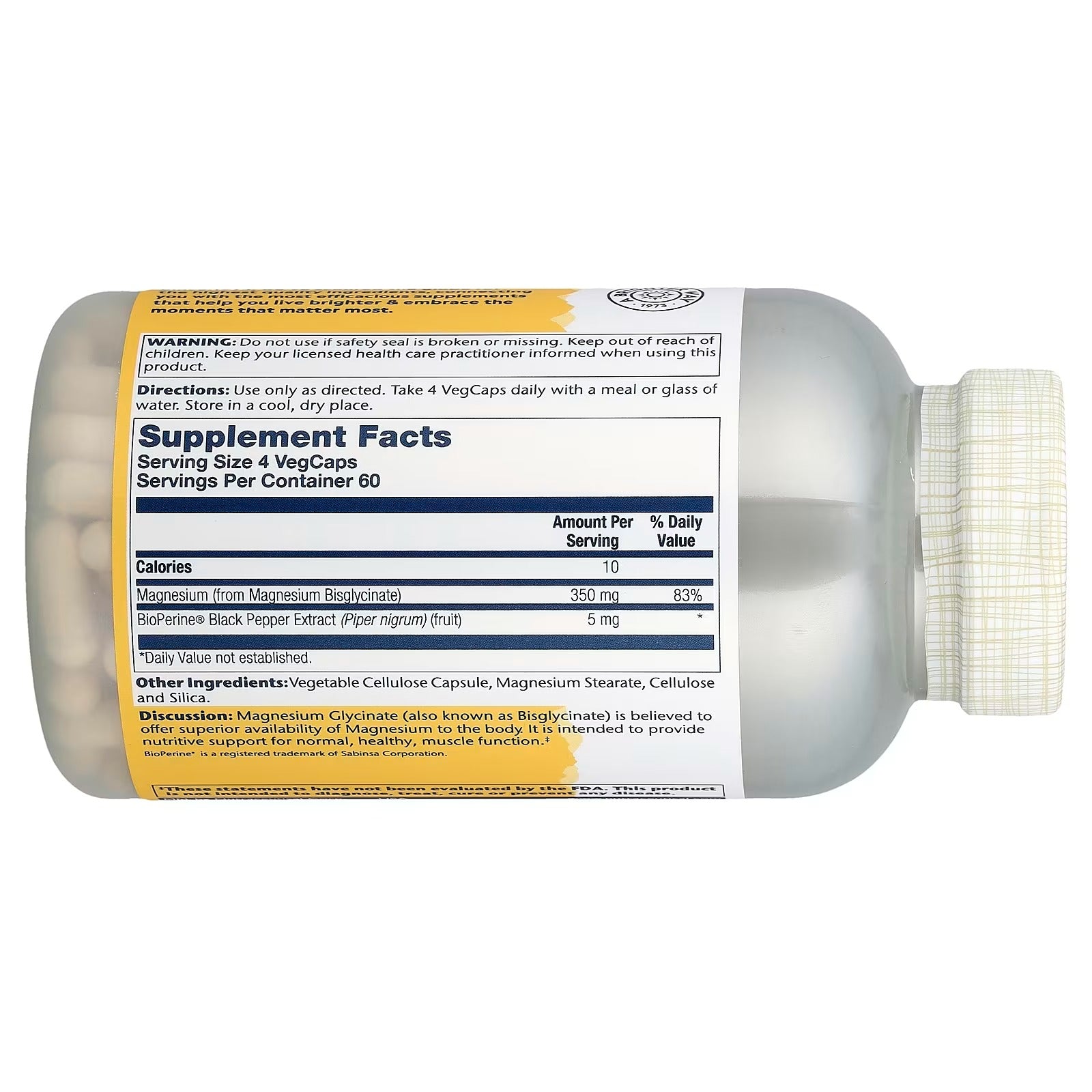 - Contains 350 mg of magnesium (as bisglycinate chelate buffered with magnesium oxide) per 4-capsule serving